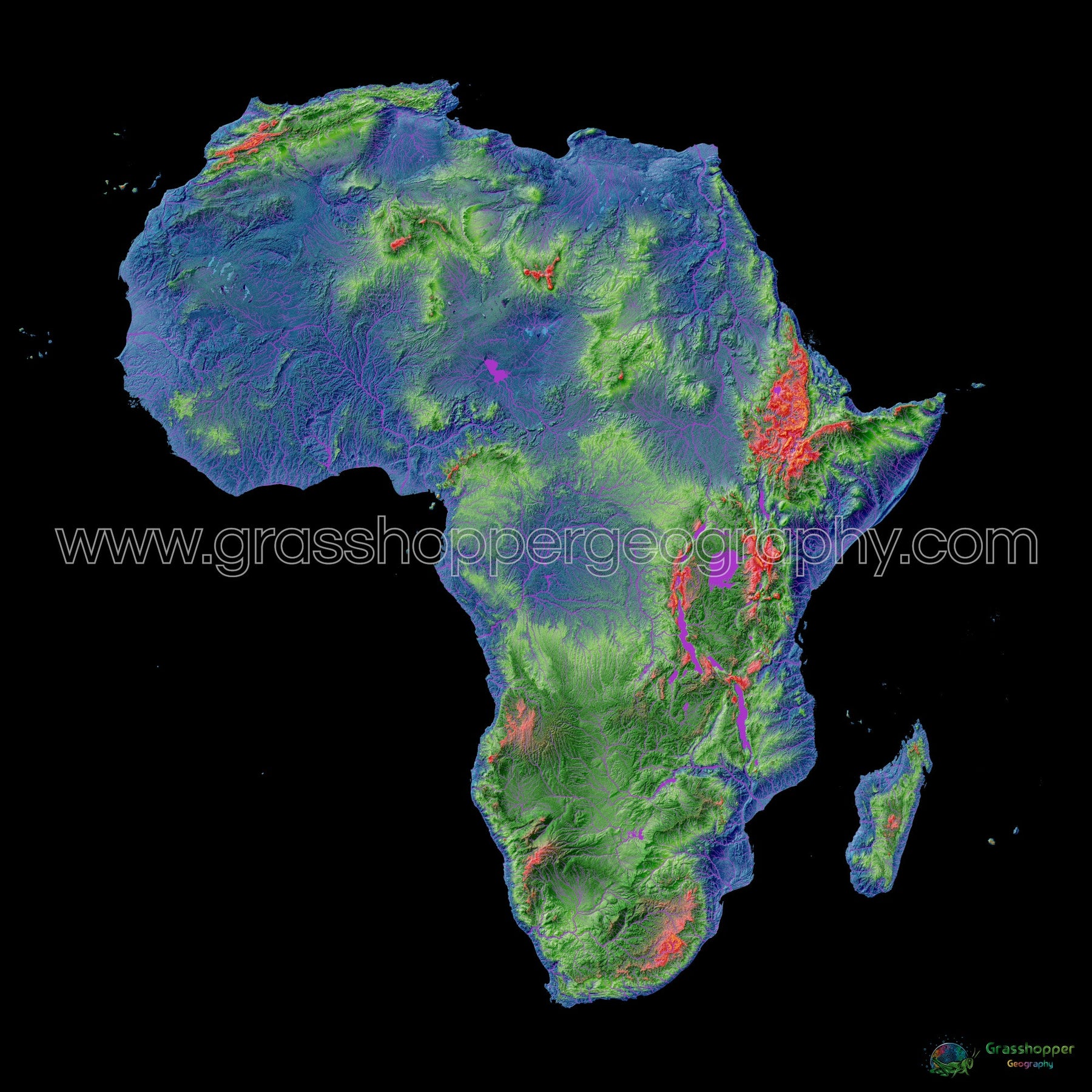 Africa Elevation map, black Fine Art Print – Grasshopper Geography